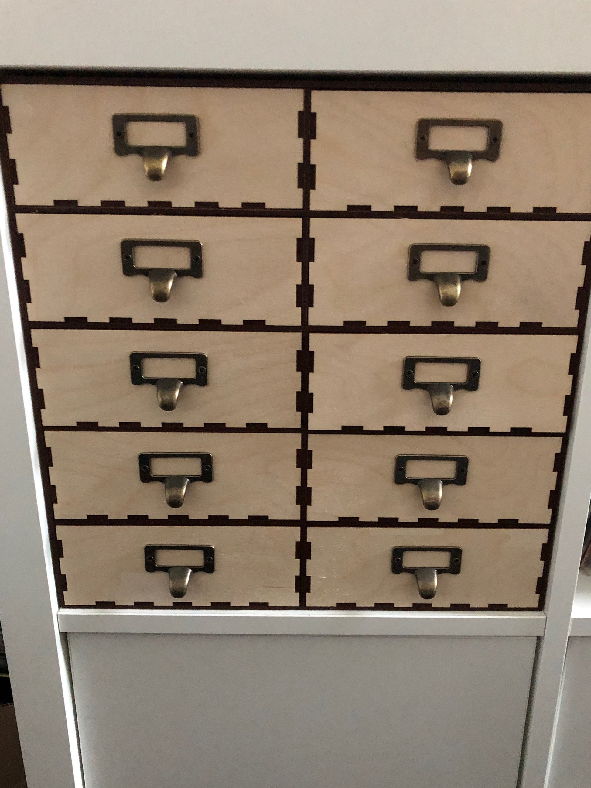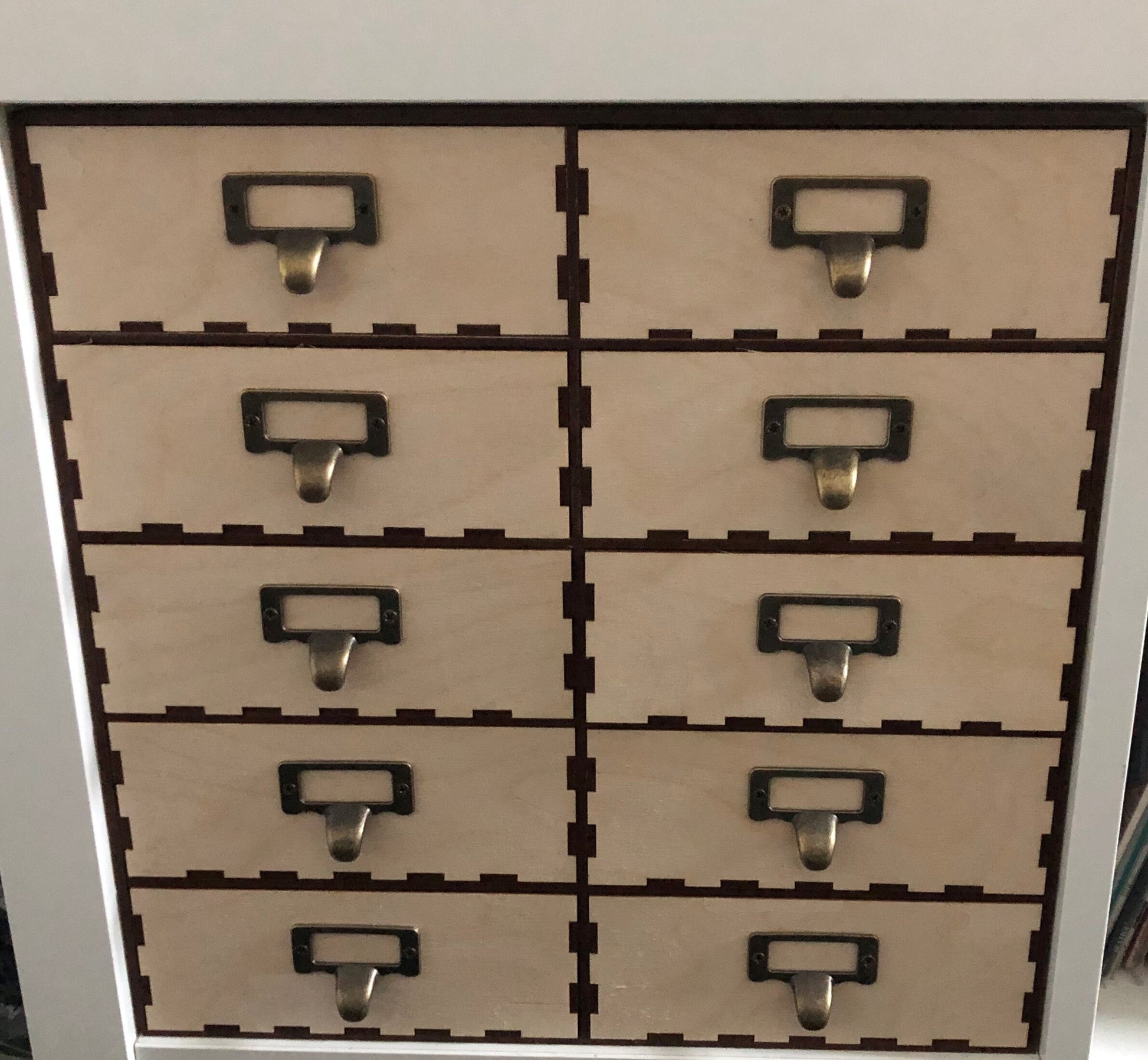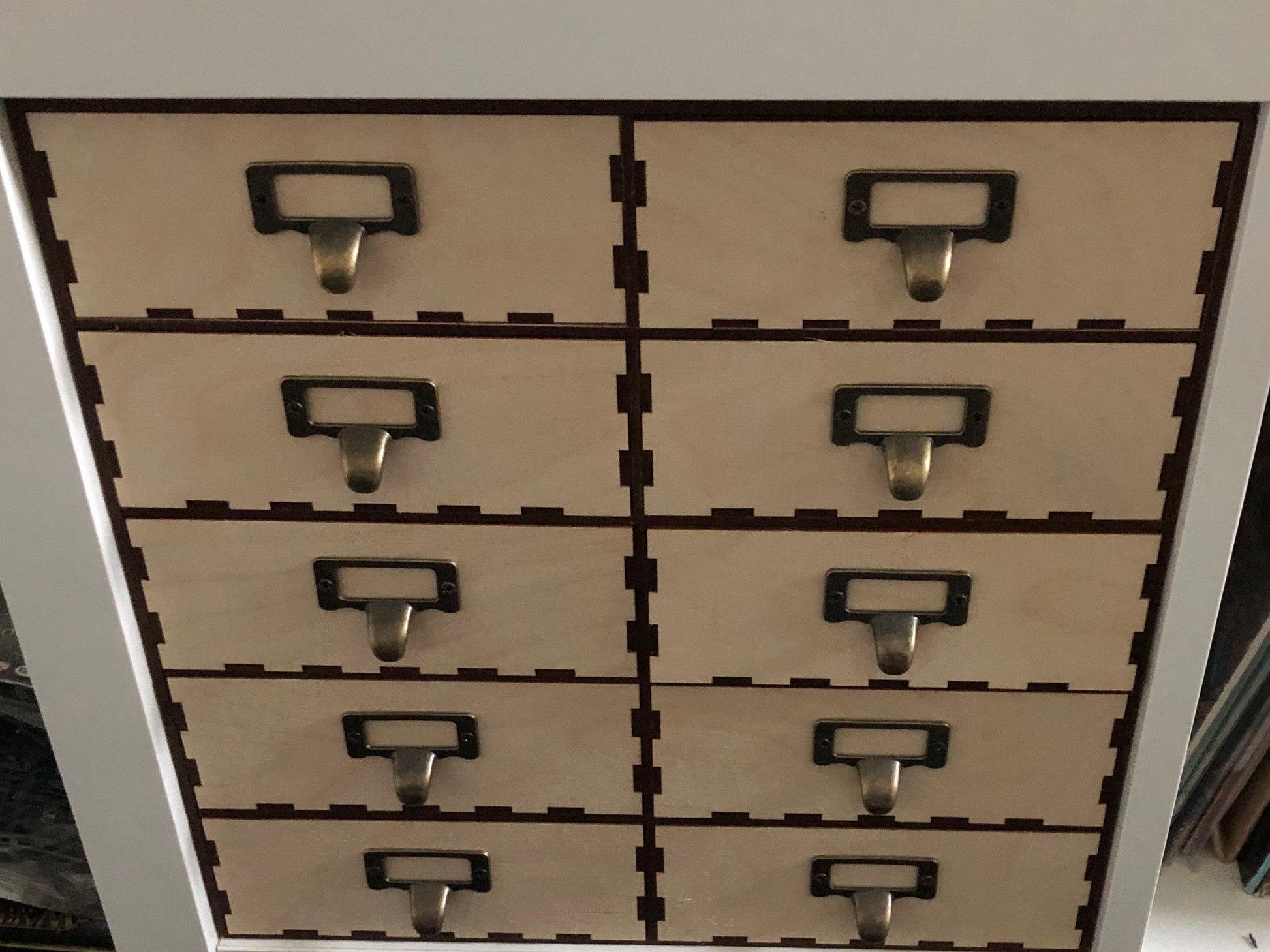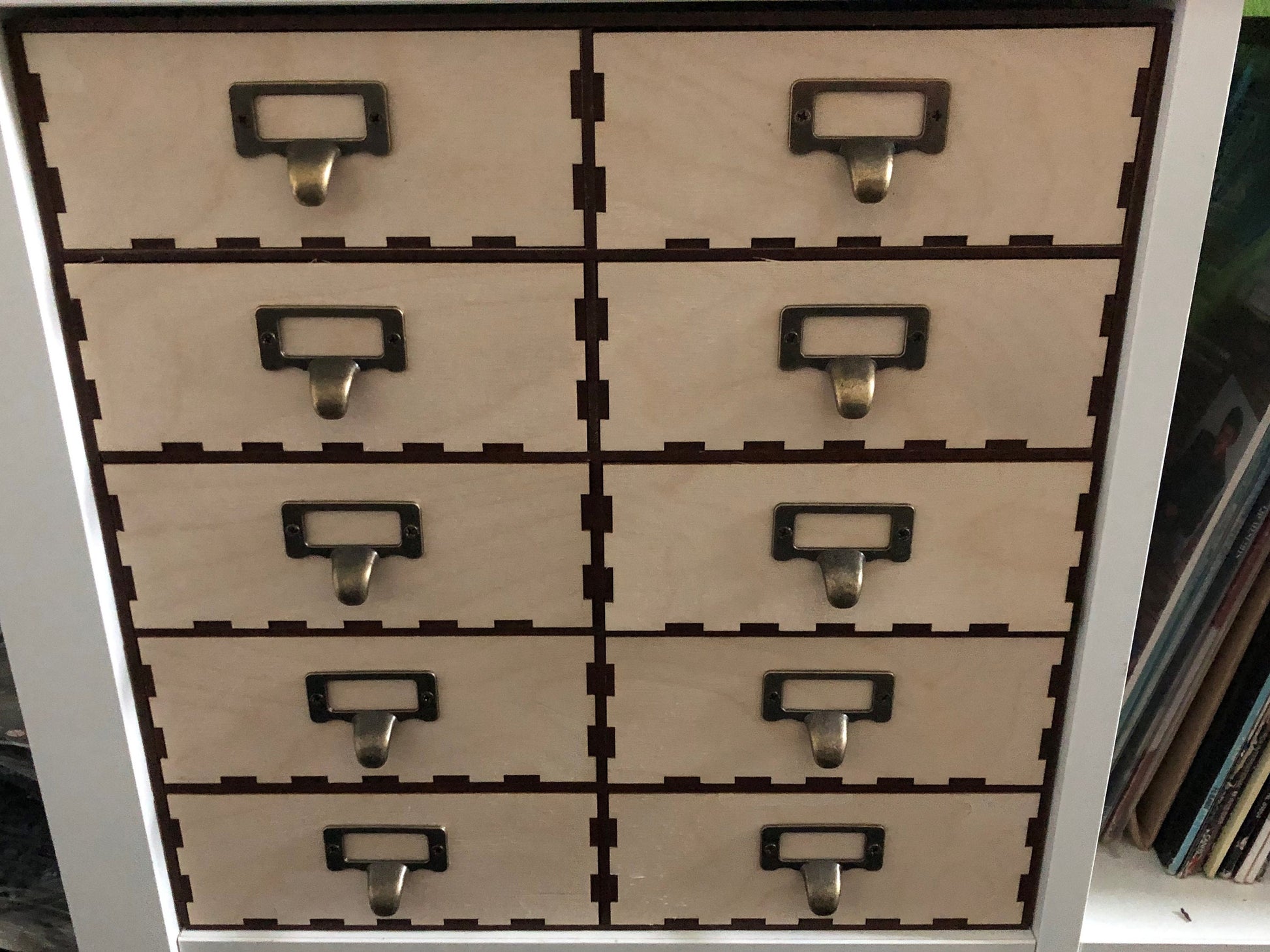 10 Drawer Storage Cabinet, Which is compatible with the Ikea Kallax Units or can be used on its own on any shelf or bookcase that will fit.