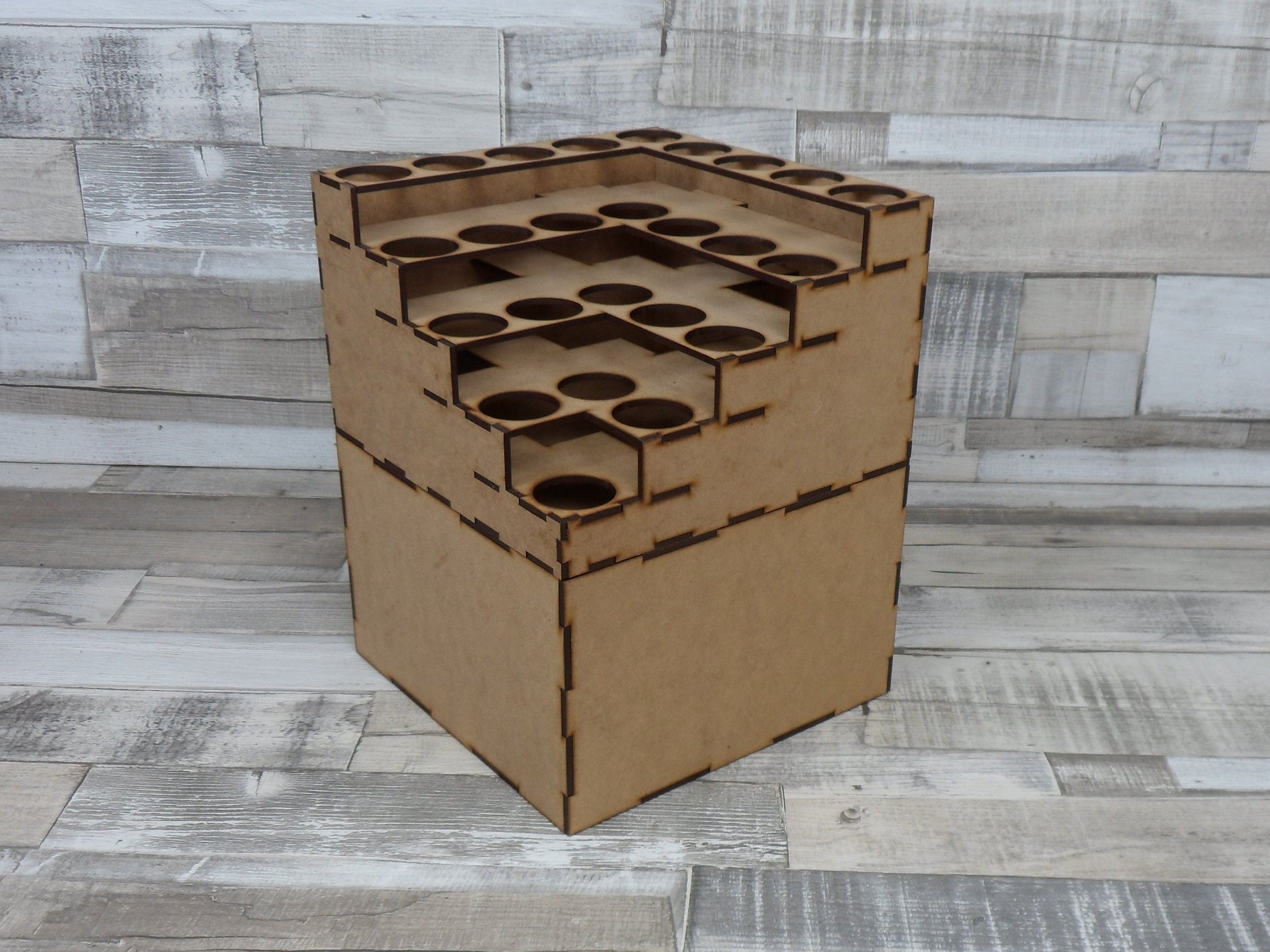 This is for a Blank corner booster cube for the modular desk set. Designed boost either the Vallejo or Citadel corner paint stands up to allow Drawers or the hutches to fit under your paint stands.