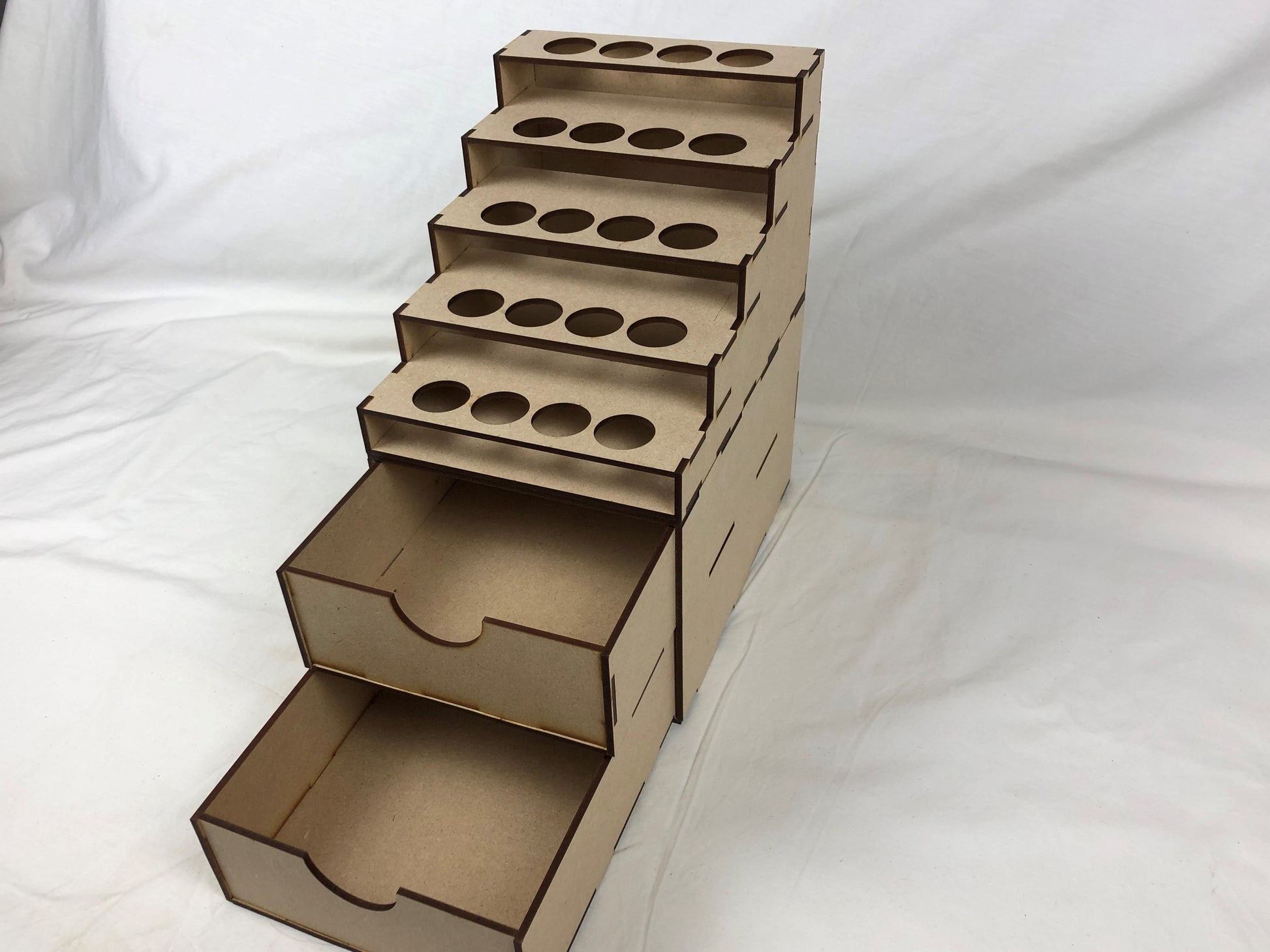 Vallejo / Army Painter half 5 Tier paint stand & 2-drawer half-storage unit. Ideal for storing your glues, clippers, files, or even models.