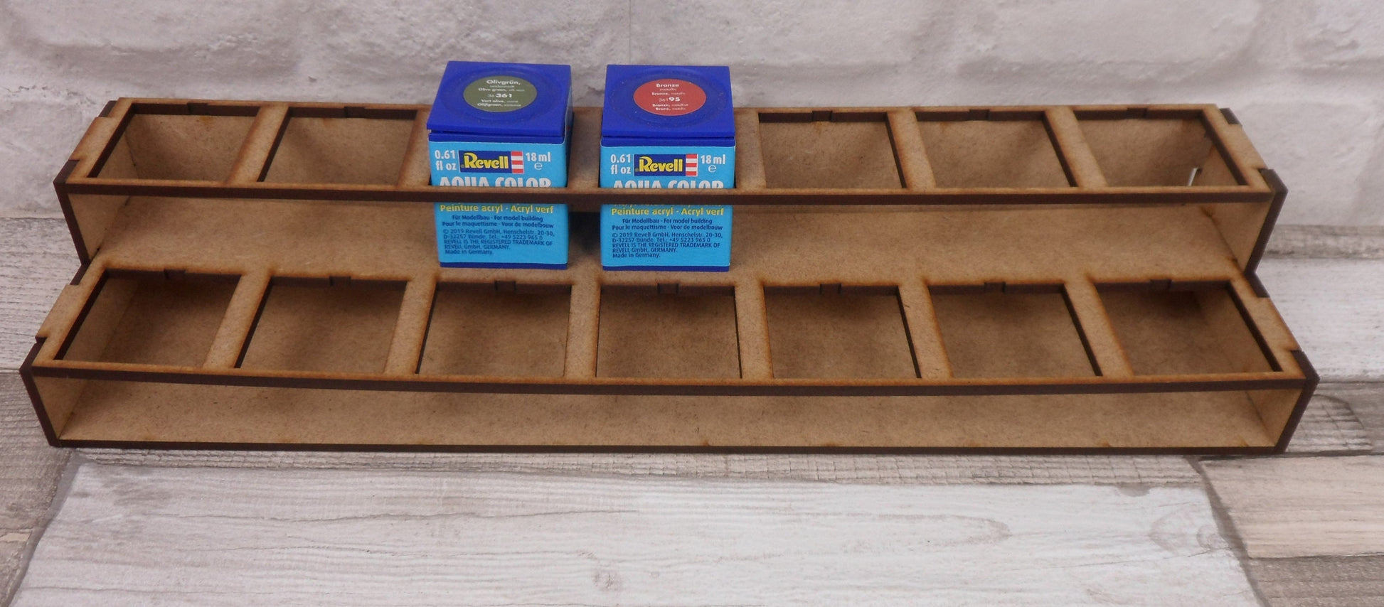 Revell Aqua paint stand, with can hold 14 paint pots on 2 tiers.