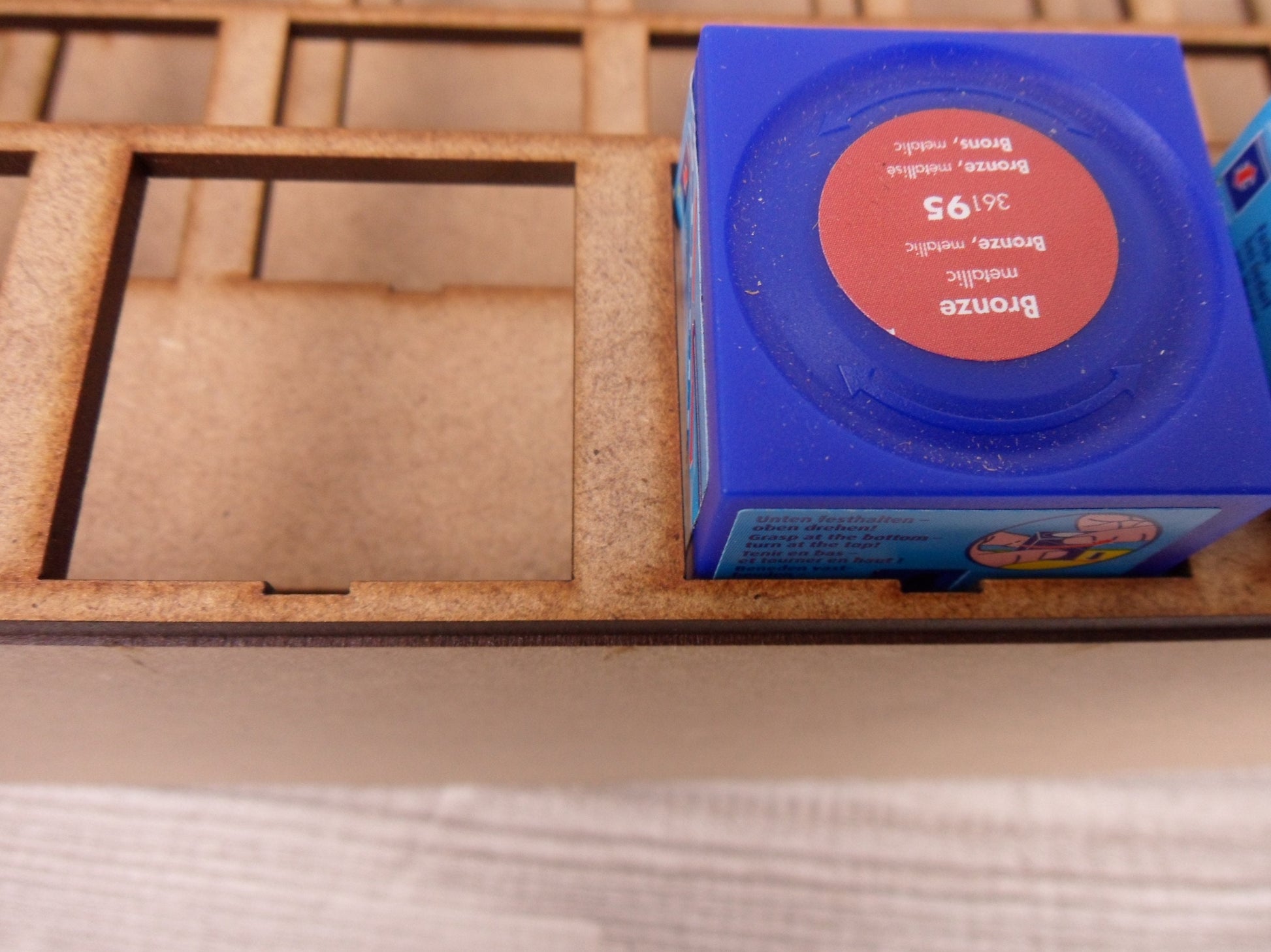 Perfectly designed to hold the square pots with a cut out square for the hinge of the pots (see last photo)