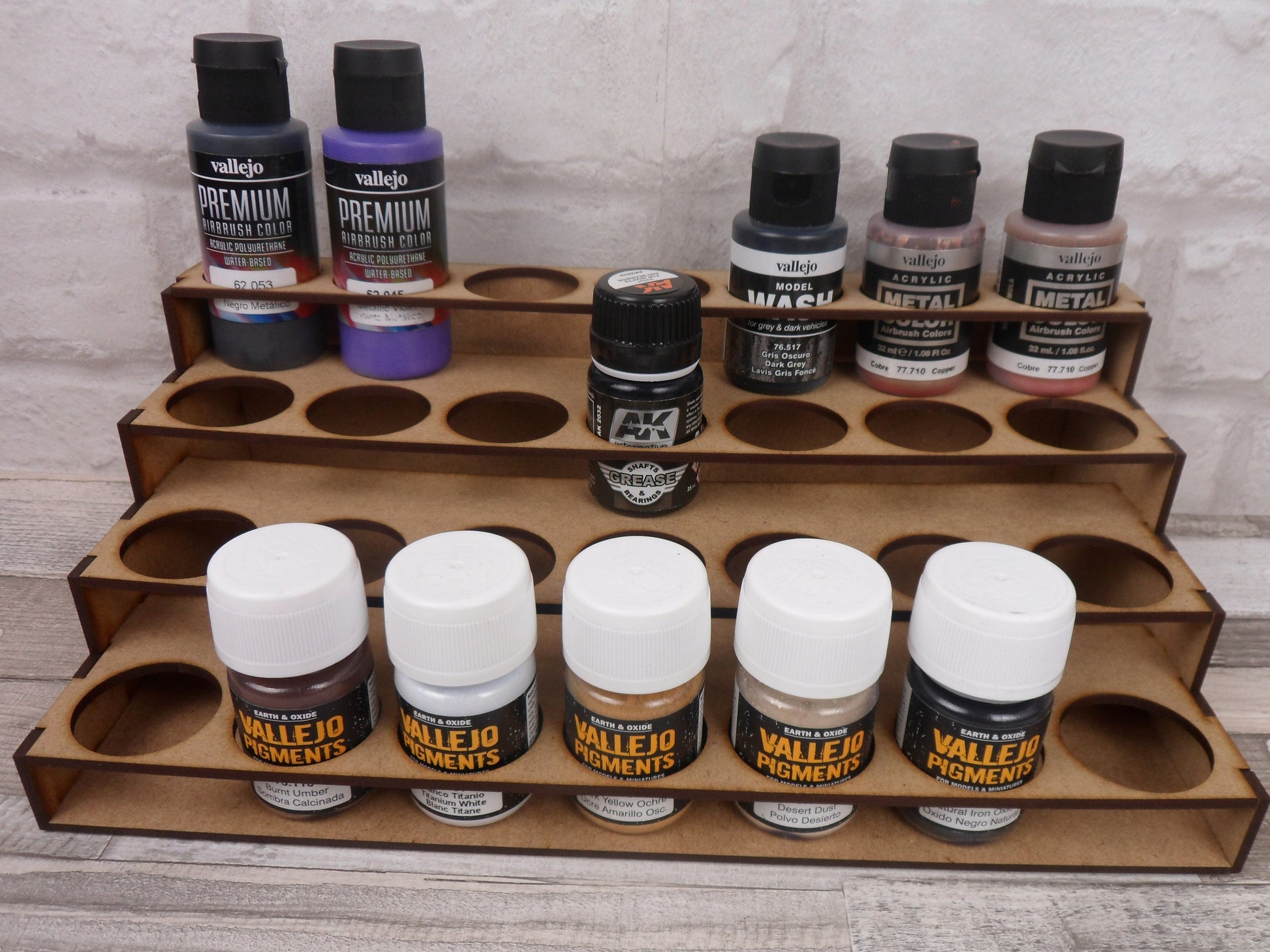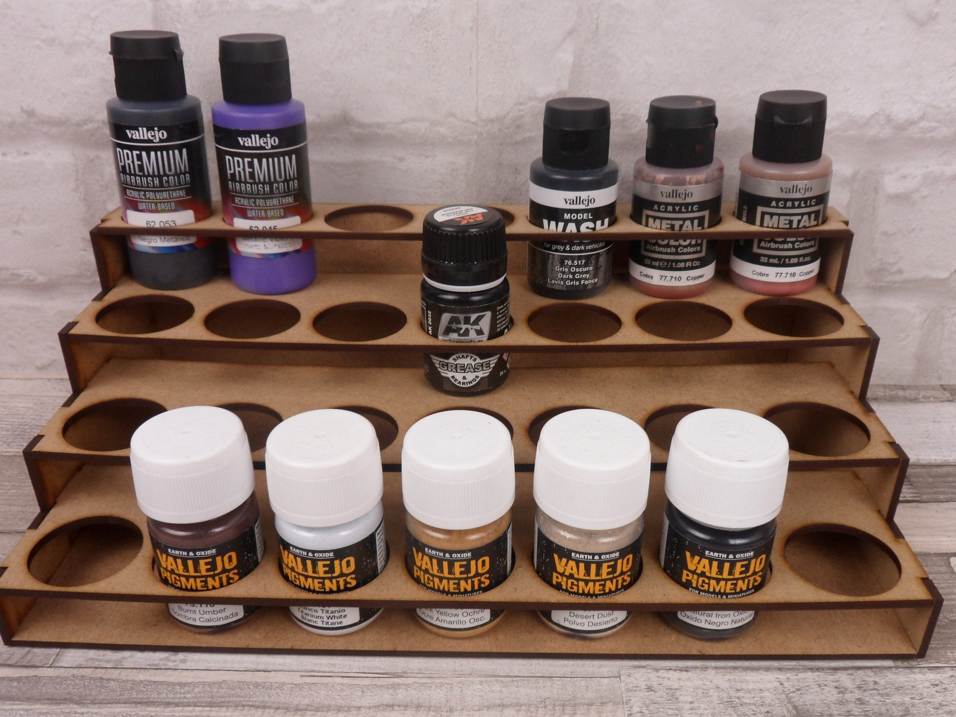 Perfectly designed to hold any standard 36mm dropper bottles. such as the Vallejo Pigments, Vallejo Washes Vallejo Model color Vallejo premium airbrush color Ak interactive paints And Liquitex inks